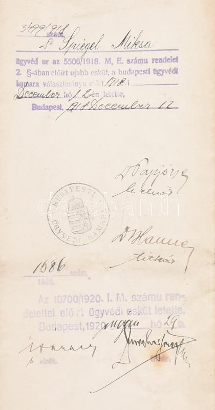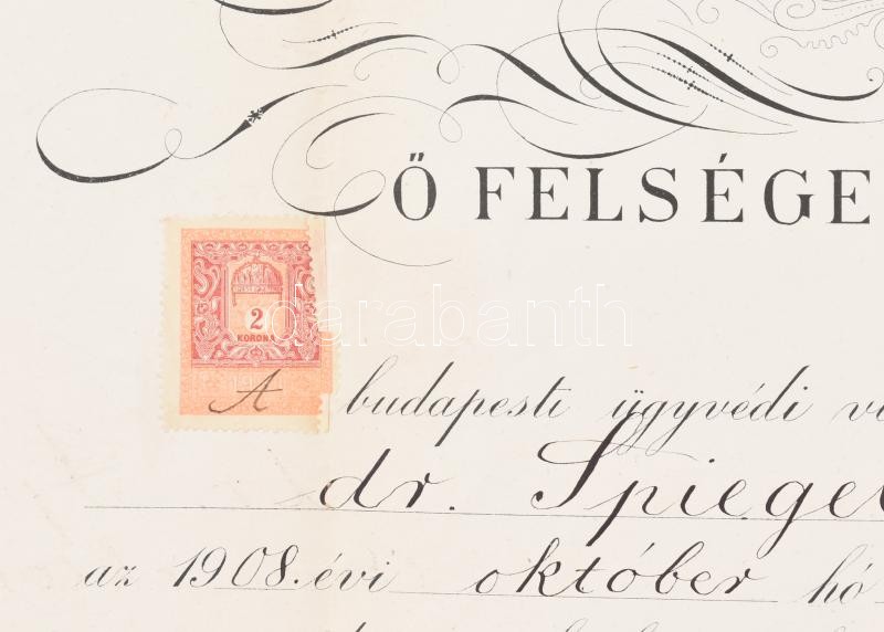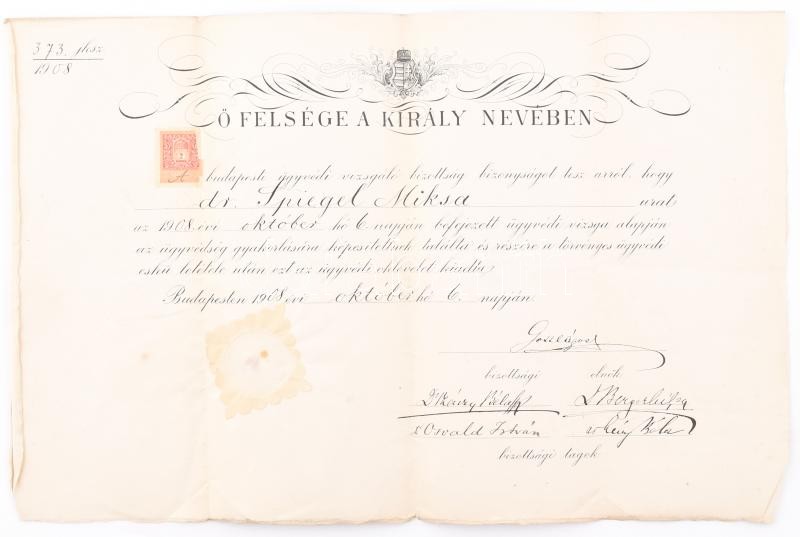 1908 Ügyvédi vizsga bizonyítvány 30x48 cm