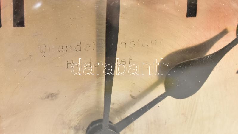Quendel Constant Budapest réz art deco felesütős asztali óra, ingajáratos, Lenzkirch szerkezettel, eredeti felhúzó kulccsal. Működő, jó állapotban, 48x28x11 cm