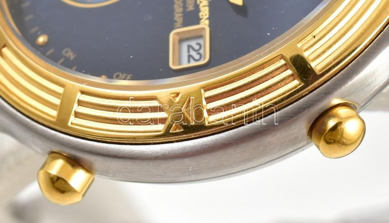Leírás: Yves Saint Laurent kronográfos, vízálló férfi karóra fém szíjjal, működő, új állapotban, leírással d: 34 mm