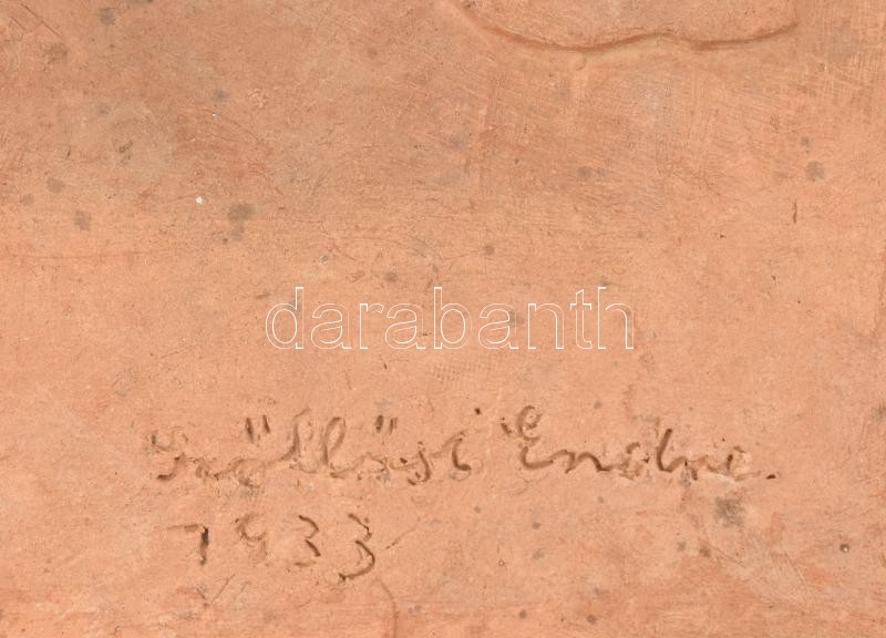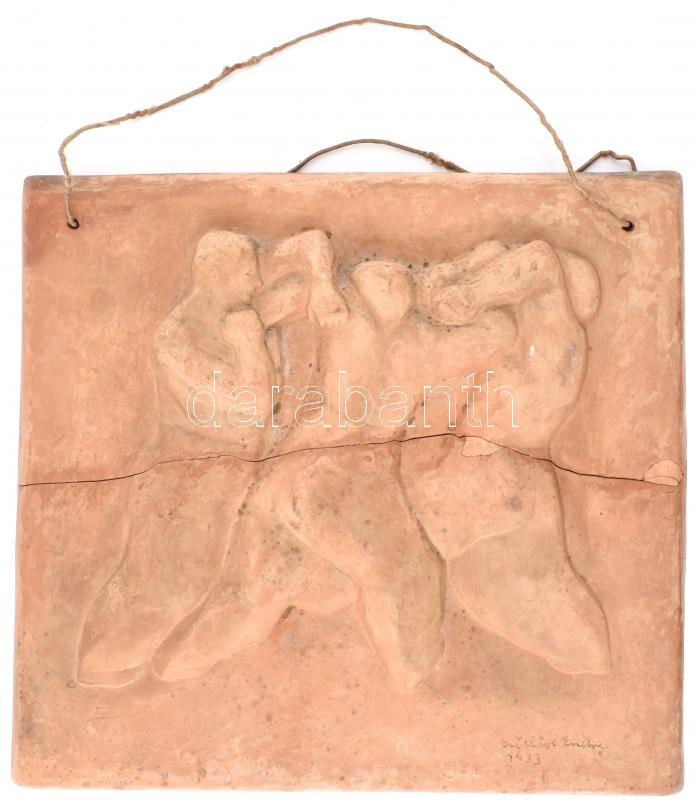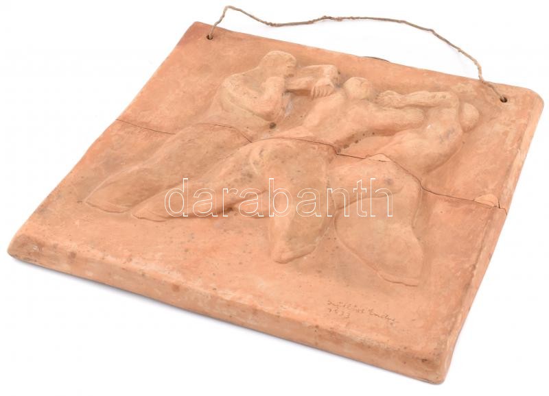 Leírás: Szőllősi Endre (1911-1967): Birkózók (1933). Terrakotta. Kettétört, összeragasztott. Jelzett. 35x31 cm