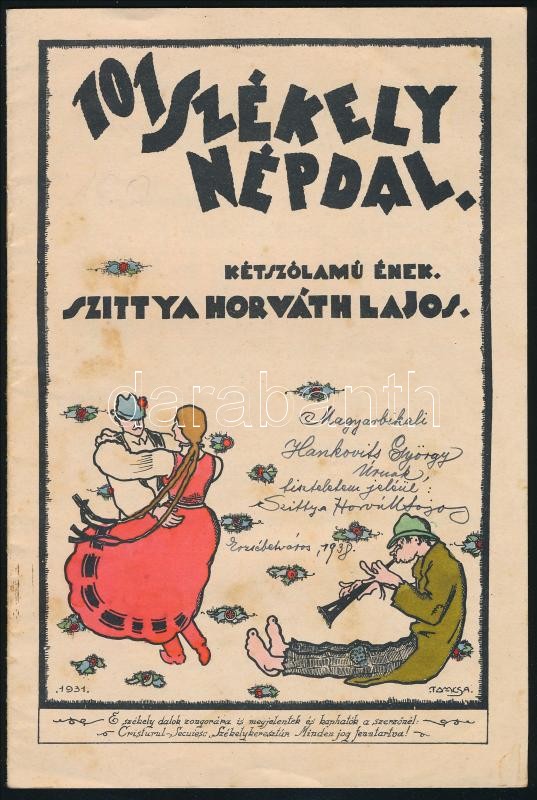 1931 Szittya Horváth Lajos: 101 székely népdal. Kottafüzet. A szerző á... https://www.darabanth.com/hu/395-Gyorsarveres/395.0/Mutargy-papirregiseg-egyeb/Zenetortenet-Kottak-Hangszerek~500030/1931-Szittya-Horvath-Lajos-101-szekely-nepdal-Kottafuzet-A-szerzo-altal-dedikalt-peldany~II2400290