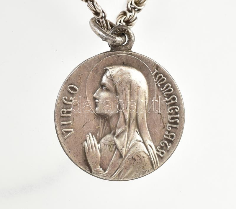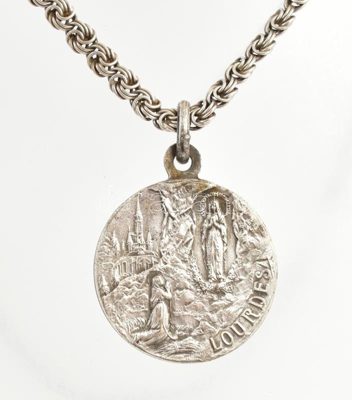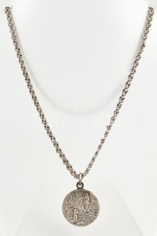 Leírás: Ezüst (Ag) nyaklánc lourdes-i Szűz Mária medállal, jelzett, h: 45 cm, nettó: 16,8 g
