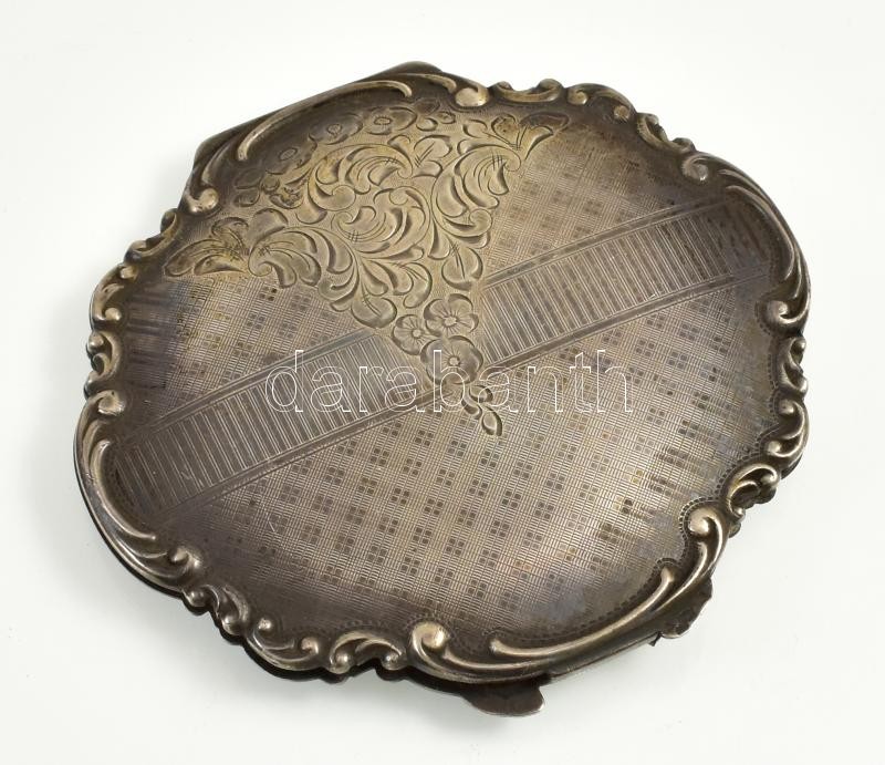 Ezüst (Ag) púderkompakt geometrikus és virág díszítéssel. Jelzett. br:... https://www.darabanth.com/hu/395-Gyorsarveres/395.0/Nemesfem-Disztargyak-Orak-es-Ekszerek/Nemesfem-Disztargyak-Orak-es-Ekszerek~2000021/Ezust-Ag-puderkompakt-geometrikus-es-virag-diszitessel-Jelzett-br-102-g-9x8-5-cm~II2398336