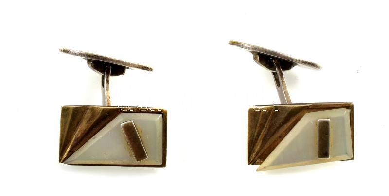 Leírás: Ezüst és gyöngyház mandzsetta pár. Jelzettek 8,3 g
