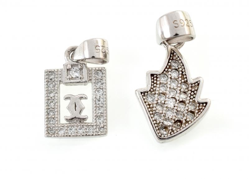 Leírás: Ezüst(Ag) függő, apró kövekkel, 2 db, jelzett, 2×0,9 cm és 1,5×0,8 cm, bruttó: 1,8 g