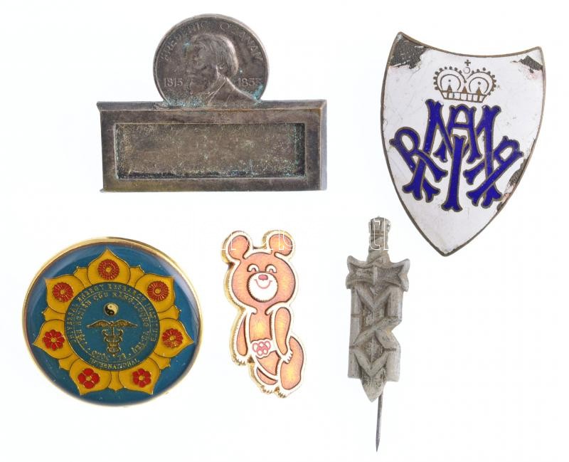 Leírás: 5xklf jelvény és kitűző tétel, közte Olaszország DN "Egyetemes Energiakutató Intézet" műgyantás fém jelvény, hátoldalán "Giemme Torino" gyártói jelzéssel, "Giemme Torino" tasakban T:1-3