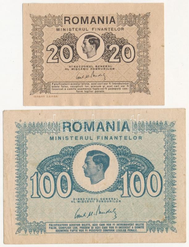 Romania 1945. 20 Lei + 100 Lei C:XF... https://www.darabanth.com/hu/395-Gyorsarveres/395.0/Numizmatika/Kulfoldi-bankjegyek~2000013/Romania-1945-20L-plus-100L-TII-III-Romania-1945-20-Lei-plus-100-Lei-CXF-F~II2402357