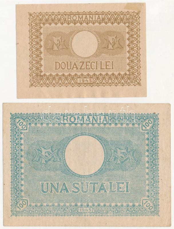 Romania 1945. 20 Lei + 100 Lei C:XF,F