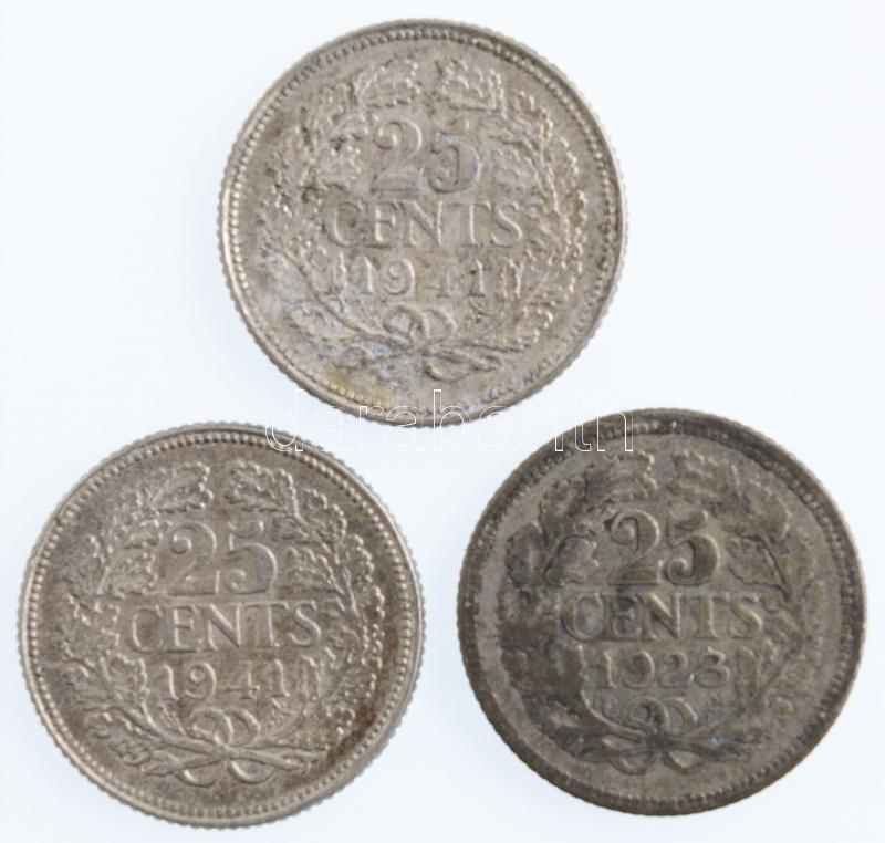 Leírás: Hollandia 1928. 25c Ag + 1941. 25c Ag (2x) T:1--2- Netherlands 1928. 25 Cents Ag + 1941. 25c (2x) C:AU-VF Krause KM#164