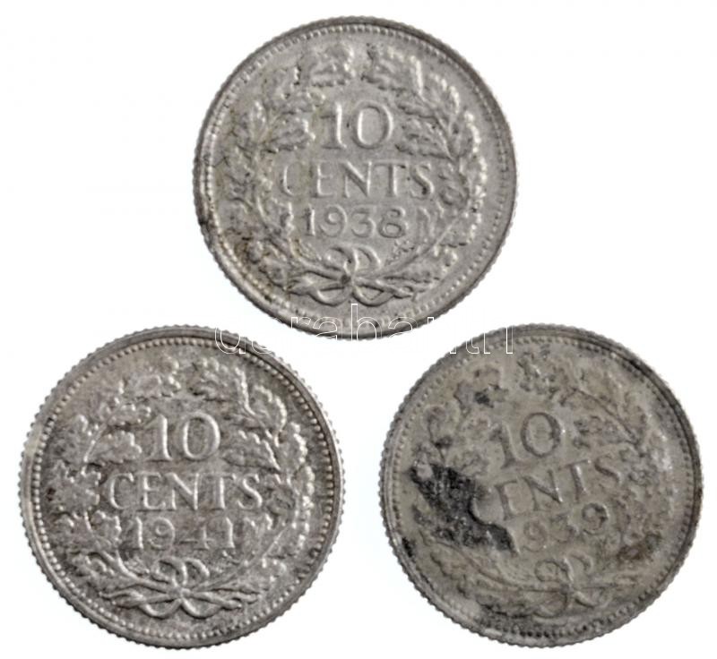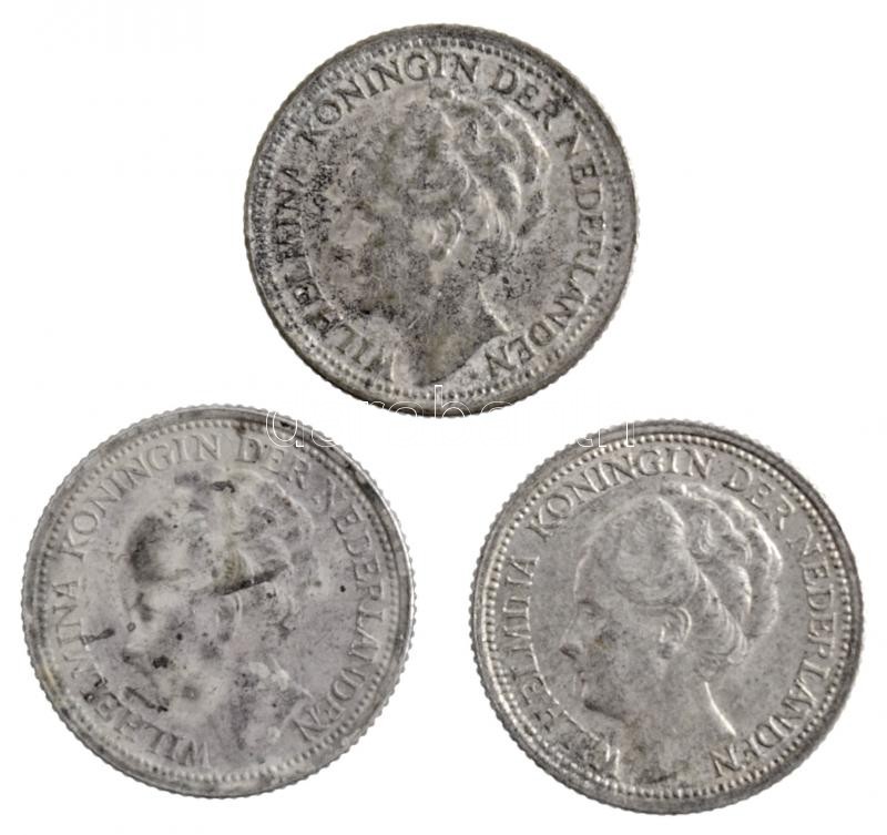 Leírás: Hollandia 1938-1941. 10c Ag (3xklf) T:1--2- patina Netherlands 1928. 25 Cents Ag + 1941. 25c (2x) C:AU-VF patina Krause KM#164