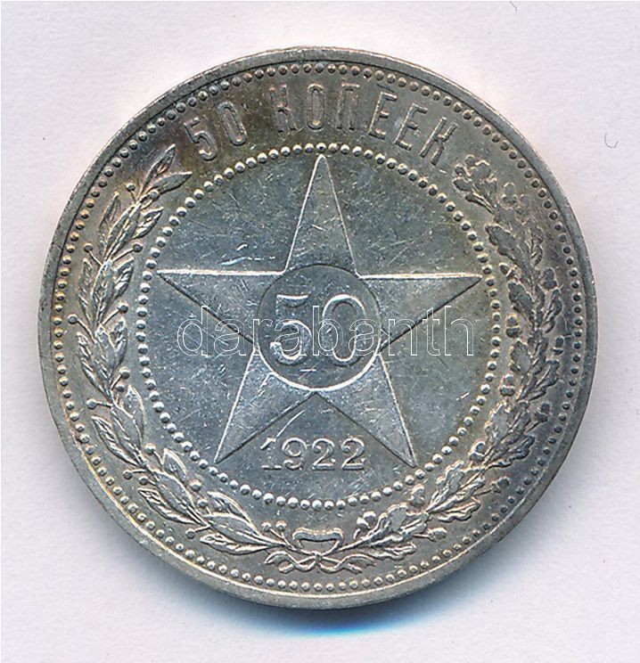 Soviet Union 1922. 50 Kopecks Ag ... https://www.darabanth.com/hu/395-Gyorsarveres/395.0/Numizmatika/Kulfoldi-fem-es-ezustpenzek~2000014/Szovjetunio-1922-50k-Ag-T2-patina-Soviet-Union-1922-50-Kopecks-Ag-CXF-patina-Krause-Y2383~II2326828