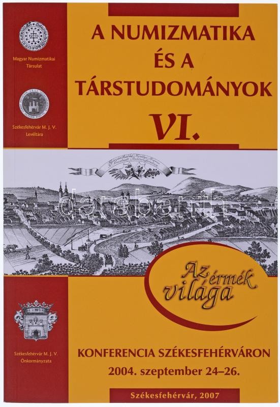 A numizmatika és a társtudományok VI. Konferencia Székesfehérváron 2004. szeptember 24-26. Székesfehérvár Megyei Jogú Város Levéltára - Magyar Numizmatikai Társulat. Székesfehérvár, 2007. Újszerű állapotban.