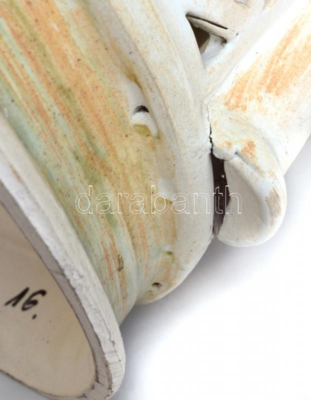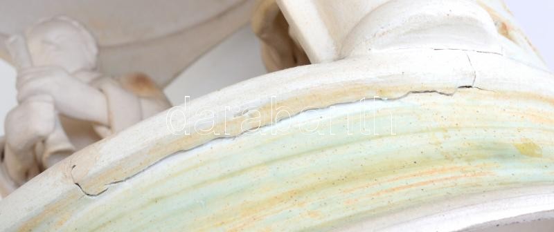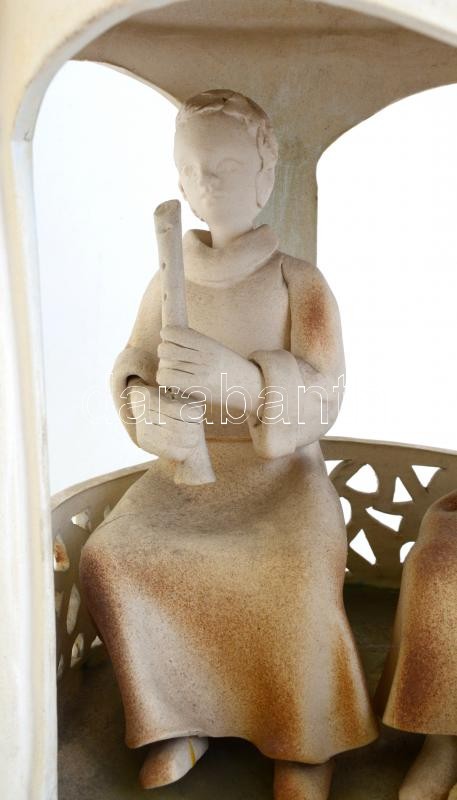 Két zenész a pavilonban, mázas kerámia, jelzés nélkül, repedésekkel, m: 42 cm, d: 23 cm. Jótékonysági árverés a Házat-Hazát Alapítvány otthonteremtési programjának támogatására.
