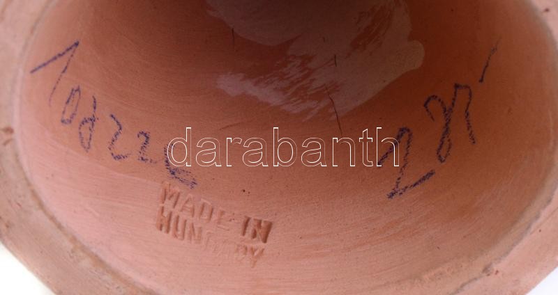 Kovács Margit (1902-1977): Lány, kendővel. Mázas kerámia, kézzel festett, jelzett, apró kopásokkal, m: 12,5 cm / Girl with a scarf. Painted ceramic in good condition