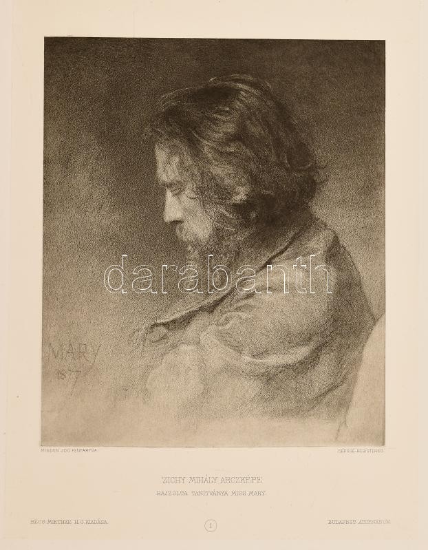 cca 1897-1902 Miss Mary (?-?) rajza után: Zichy Mihály arcképe. Heliogravűr, papír. Jelzett a heliogravűrön. Bécs, Miethke H. o. kiadása. Hártyapapírral védve. 25x18,5 cm