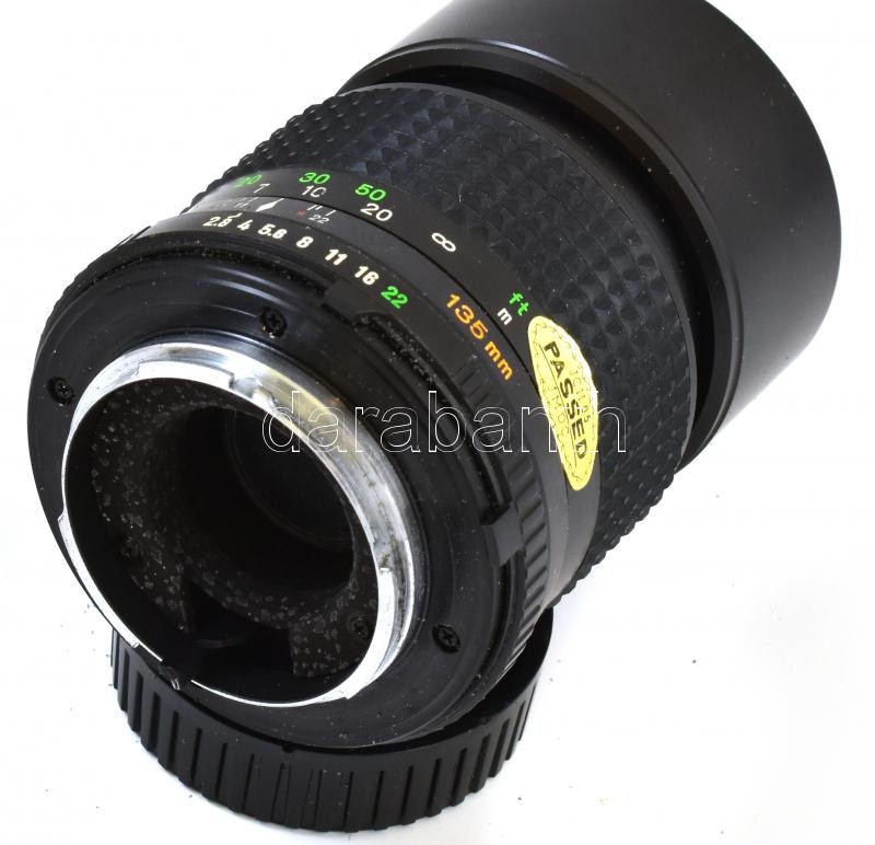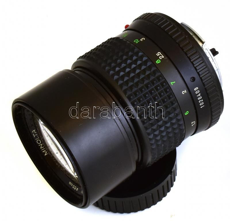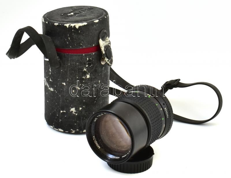 Leírás: Minolta MD tele Rokkor objektív 135 mm 1:2,8 objektív megviselt tokkal.