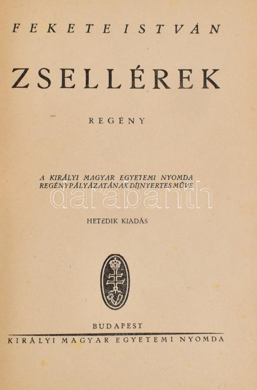 Fekete István: Zsellérek. Bp., (cca 1940), Kir. M. Egyetemi Nyomda. He... https://www.darabanth.com/hu/396-Gyorsarveres/396.0/Konyvek/Konyvek-Egyeb-ritkasagok~1000024/Fekete-Istvan-Zsellerek-Bp-cca-1940-Kir-M-Egyetemi-Nyomda-Hetedik-kiadas-Kiadoi-felv~II2406075