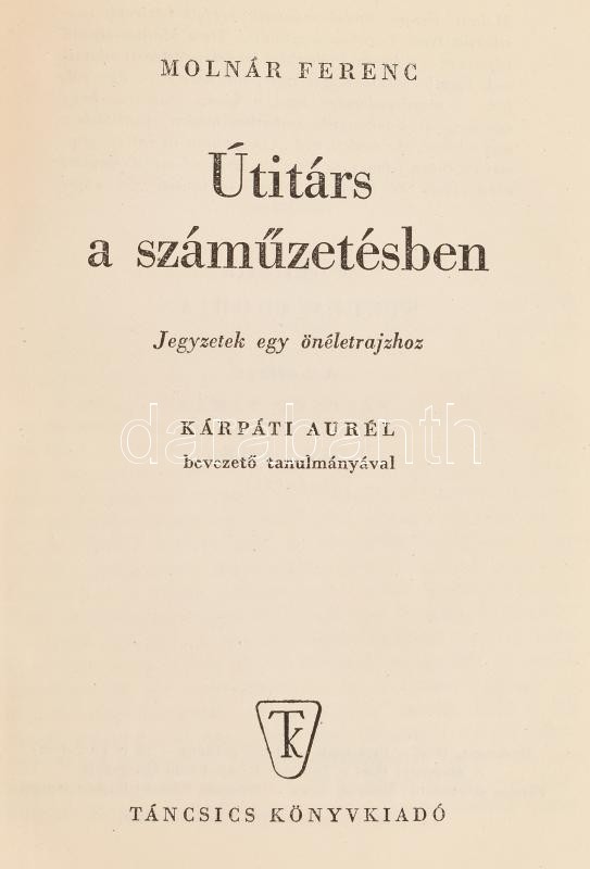 Molnár Ferenc: Útitárs a száműzetésben. Jegyzetek egy önéletrajzhoz. K... https://www.darabanth.com/hu/396-Gyorsarveres/396.0/Konyvek/Konyvek-Egyeb-ritkasagok~1000024/Molnar-Ferenc-Utitars-a-szamuzetesben-Jegyzetek-egy-oneletrajzhoz-Karpati-Aurel-beveze~II2410785