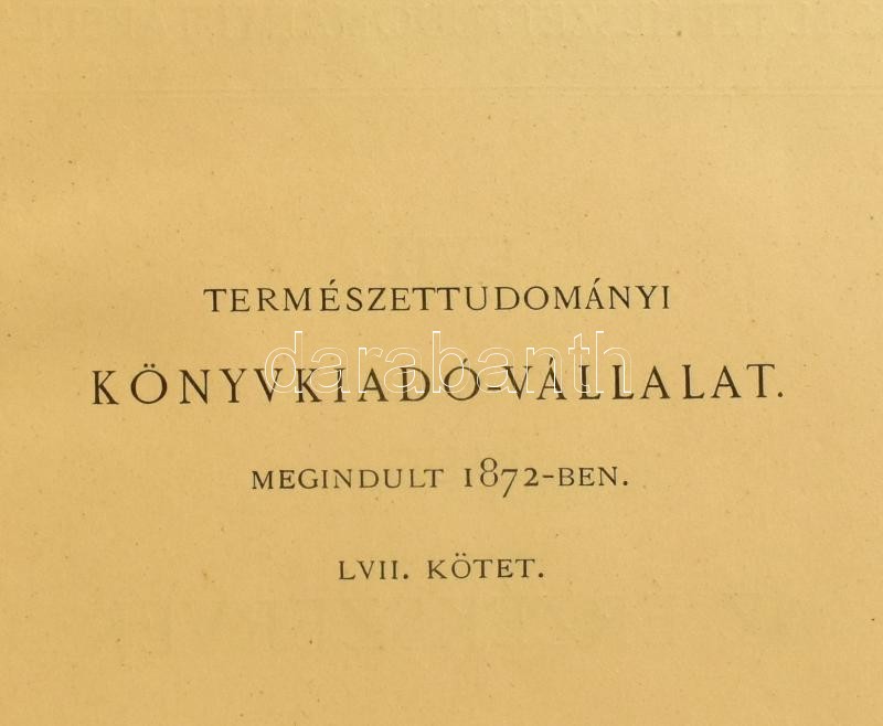 Bp. 1896. K. M. Term.tud. Társ. VIII. 268 p. 2 sztl. lev. (Term.tud. Könyvk. Váll. 57.) Kiadói, festett vászonkötésben, szép állapotban