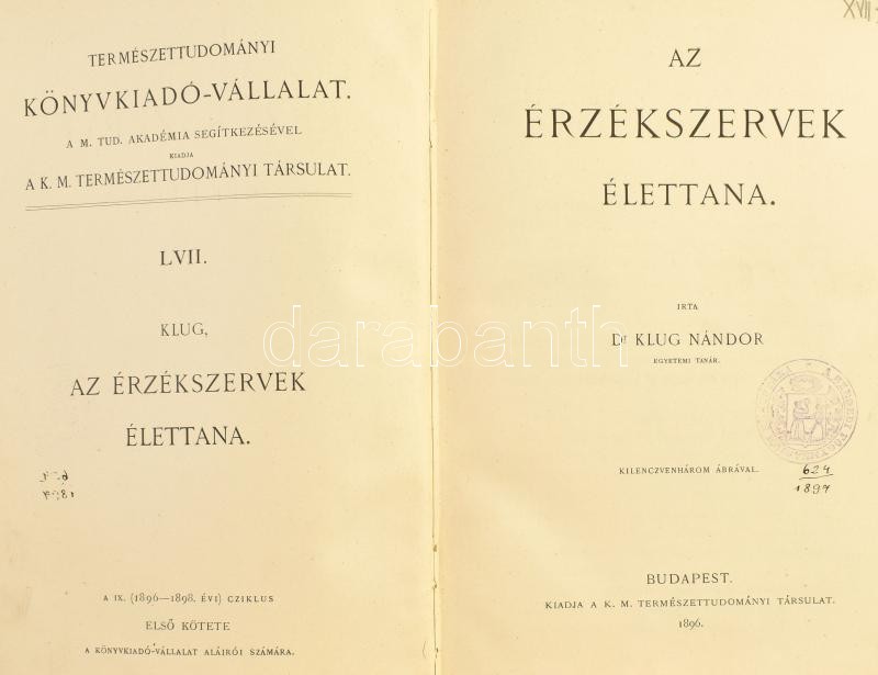 Klug Nándor: Az érzékszervek élettana. Kilenczvenhárom ábrával.