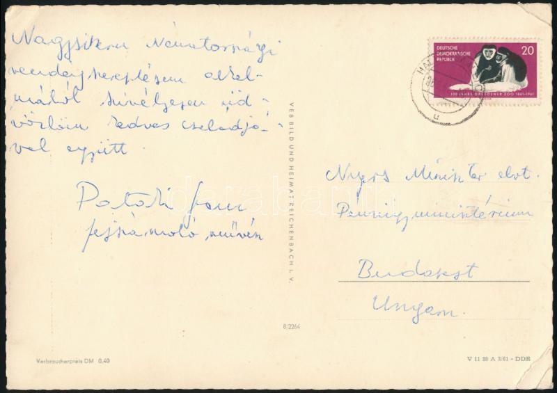 cca 1961 Pataki Ferenc (1921-2017) fejszámoló művész üdvözlő lapja Nyers Rezső (1923-2018) magyar közgazdász, politikus, a második Kádár-kormány pénzügyminiszterének (1960-1962) küldve, Pataki Ferenc autográf aláírásával.
