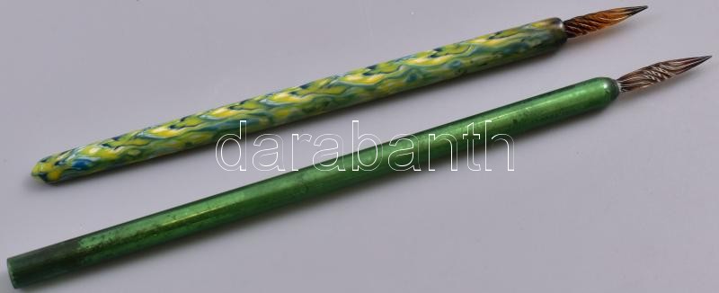 Leírás: 2 db üveg töltőtoll, h: 14,5 és 16,5 cm
