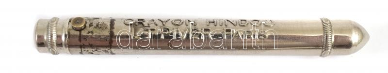 Leírás: Francia szemceruza tokja reklámfelirattal, kis rozsdafoltokkal, h: 7,5 cm