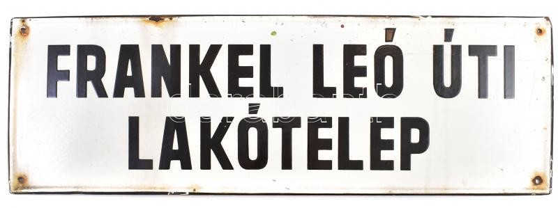 Leírás: "Frankel Leó úti lakótelep" zománcozott fém tábla, korának megfelelő állapotban, 20×64 cm
