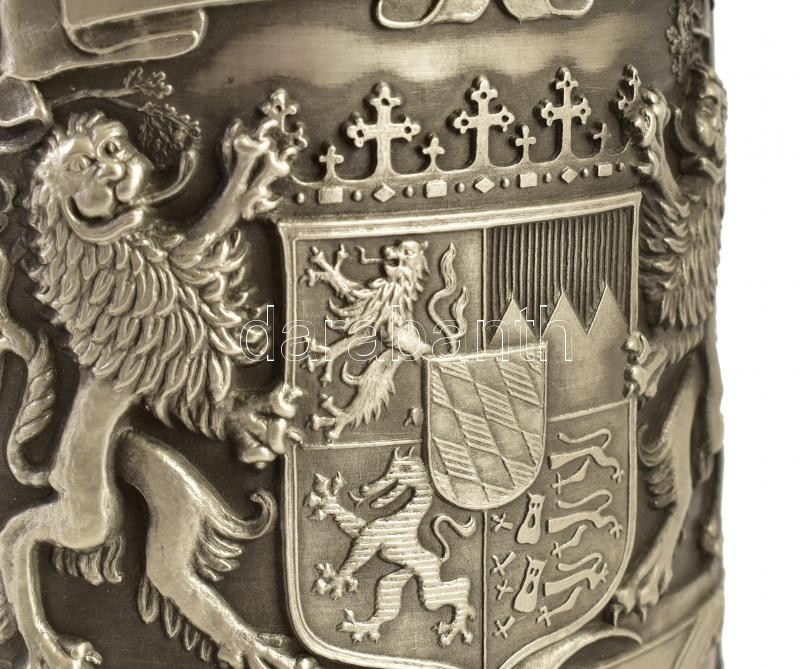 Óriás bajor ón korsó, gazdagon díszített, címerrel, fedelén oroszlánna... https://www.darabanth.com/hu/396-Gyorsarveres/396.0/Mutargy-papirregiseg-egyeb/Bolhapiac~500013/Orias-bajor-on-korso-gazdagon-diszitett-cimerrel-fedelen-oroszlannal-jelzett-jo-alla~II2412631