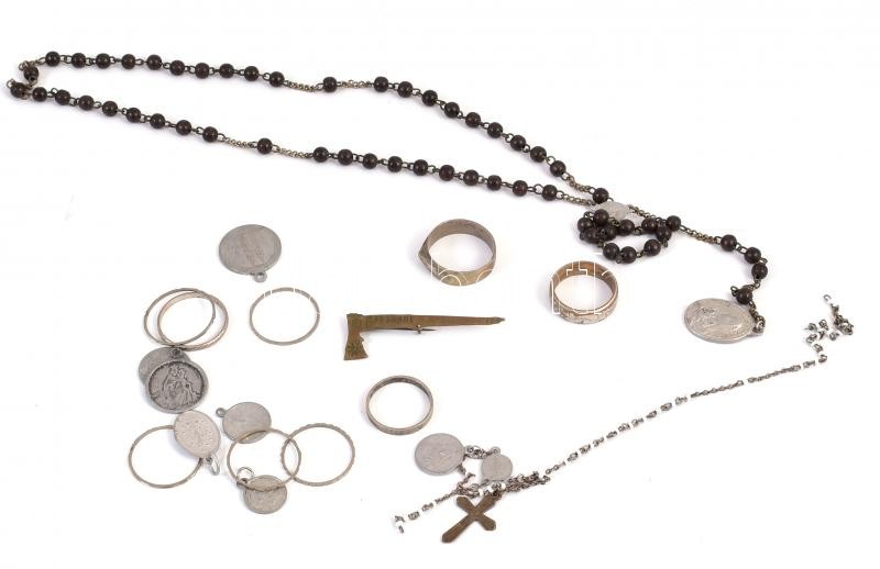 Leírás: Régi kegyérmek, gyűrűk és rózsafüzér