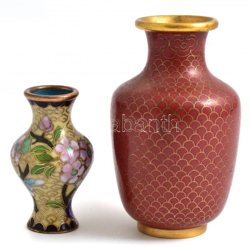 Leírás: Rekeszzománc réz mini váza, 2 db, jó állapotban, m: 5 és 8 cm