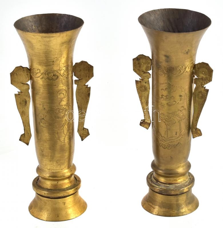 Leírás: Réz váza, párban, állatfigurákkal, 20,5×6,5 cm