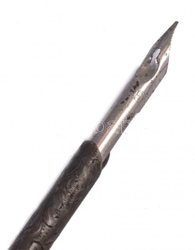 Leírás: Schuller József Budapest feliratú antik toll, fém heggyel, gyöngyházas, virágmintás nyéllel, 16 cm