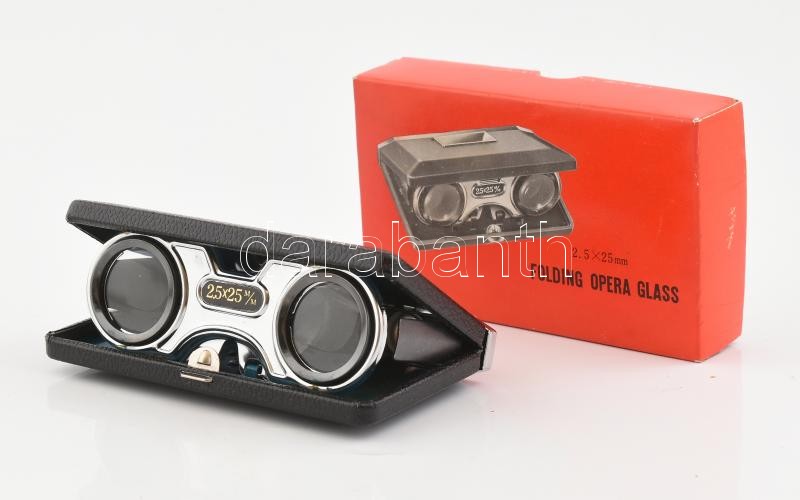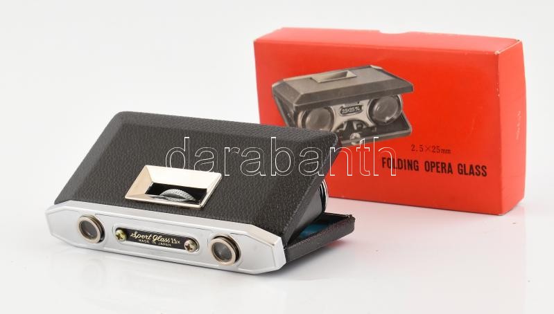Leírás: Sport Glass japán gyártmányú összecsukható fémtokos látcső, eredeti dobozában, kis kopással, 11x6 cm