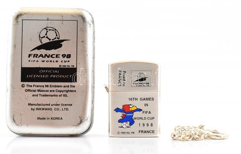 Leírás: Zippo mintájú benzines öngyújtó Francia foci VB dekorral, fém dobozban