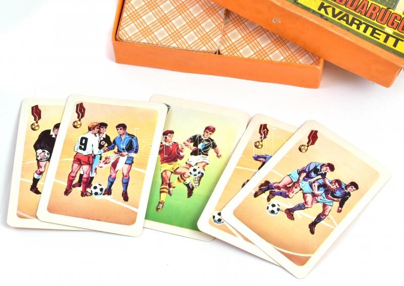 Labdarúgó Kvartett, kártyajáték, benne 40 lappal, leírással, eredeti d... https://www.darabanth.com/hu/396-Gyorsarveres/396.0/Mutargy-papirregiseg-egyeb/Jatekok~500014/Labdarugo-Kvartett-kartyajatek-benne-40-lappal-leirassal-eredeti-dobozaban-12x15x3-cm~II2412027