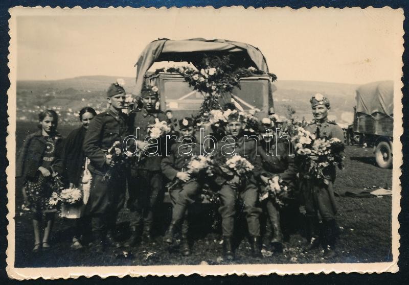 1940 Nagyvárad, magyar katonák az erdélyi bevonuláskor, fotó, 6×9 cm https://www.darabanth.com/hu/396-Gyorsarveres/396.0/Mutargy-papirregiseg-egyeb/Militaria~500030/1940-Nagyvarad-magyar-katonak-az-erdelyi-bevonulaskor-foto-6C3979-cm~II2407784