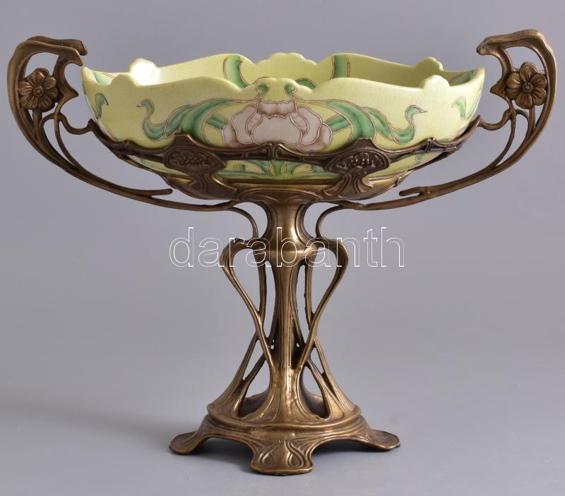 Szecessziós stílusú asztali kínáló, fajansz és réz elemekből, kis kopá... https://www.darabanth.com/hu/396-Gyorsarveres/396.0/Mutargy-papirregiseg-egyeb/Mutargyak-antikvitas~500009/Szecesszios-stilusu-asztali-kinalo-fajansz-es-rez-elemekbol-kis-kopasnyomokkal-32C39726-c~II2407197