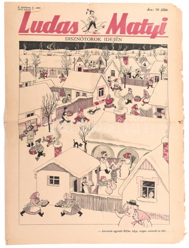 1954 Ludas Matyi X. évf. 2. sz., 1954. január 7., Szerk.: Gádor Béla, ... https://www.darabanth.com/hu/396-Gyorsarveres/396.0/Mutargy-papirregiseg-egyeb/Nyomtatvanyok~500033/1954-Ludas-Matyi-X-evf-2-sz-1954-januar-7-Szerk-Gador-Bela-Tabi-Laszlo-kisebb-szak~II2400381