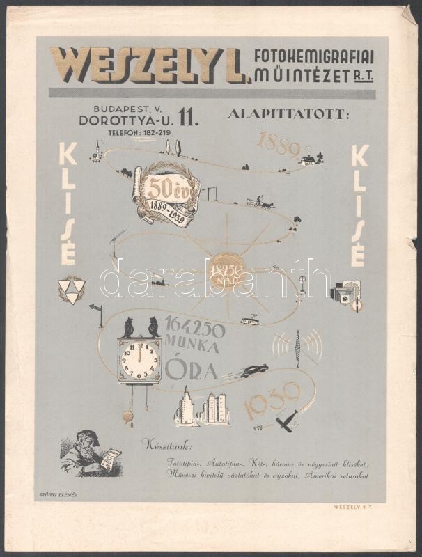 1939 Weszely L. Fotokemigrafiai Műintézet Rt. aranyozott díszítésű rek... https://www.darabanth.com/hu/396-Gyorsarveres/396.0/Mutargy-papirregiseg-egyeb/Plakat~2000022/1939-Weszely-L-Fotokemigrafiai-Muintezet-Rt-aranyozott-diszitesu-reklamplakatja-gyurodC3~II2408497