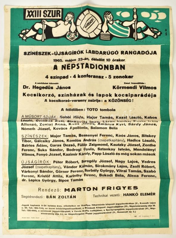 1965 Színészek-Újságírók Labdarúgó Rangadója a Népstadionban (SZÚR), p... https://www.darabanth.com/hu/396-Gyorsarveres/396.0/Mutargy-papirregiseg-egyeb/Plakat~2000022/1965-Szineszek-Ujsagirok-Labdarugo-Rangadoja-a-Nepstadionban-SZUR-plakat-Szucs-Pal~II2411173