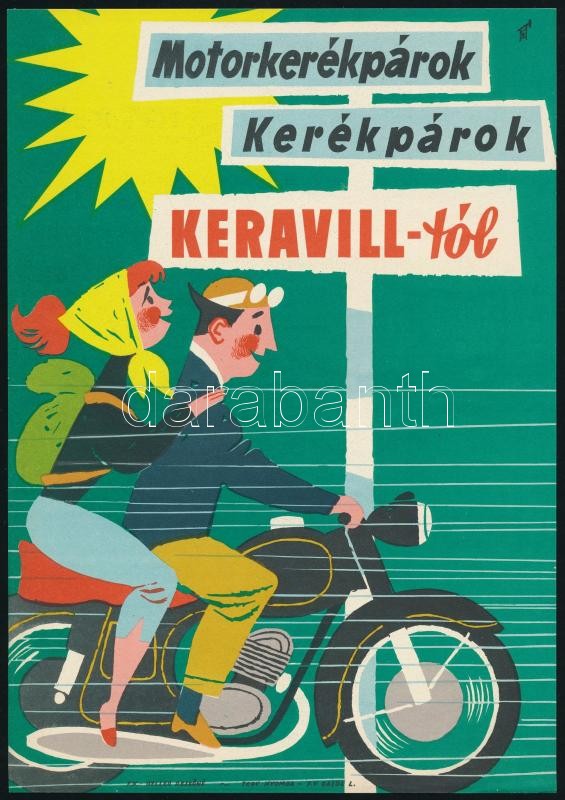 "Motorkerékpárok a Keravill-tól" villamosplakát, 23,5×16,5 cm https://www.darabanth.com/hu/396-Gyorsarveres/396.0/Mutargy-papirregiseg-egyeb/Plakat~2000022/Motorkerekparok-a-Keravill-tol-villamosplakat-23-5C39716-5-cm~II2413342
