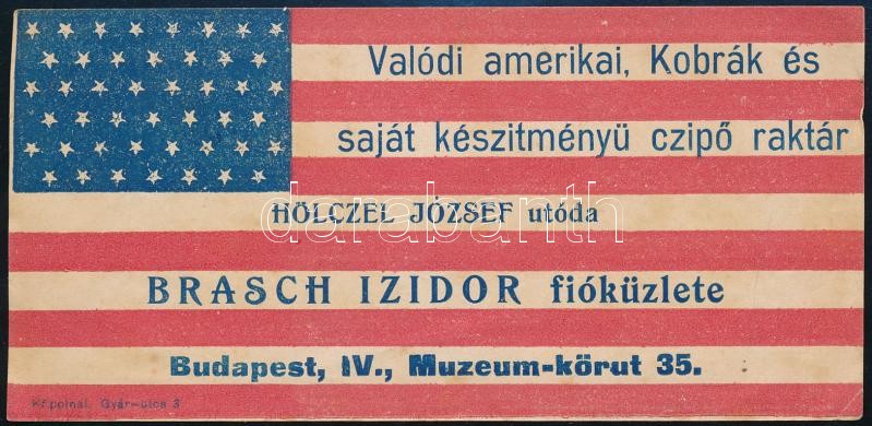 cca 1910-1920 Brasch Izidor fióküzlete, "Valódi amerikai, Kobrák és sa... https://www.darabanth.com/hu/396-Gyorsarveres/396.0/Mutargy-papirregiseg-egyeb/Reklam~500024/cca-1910-1920-Brasch-Izidor-fiokuzlete-Valodi-amerikai-Kobrak-es-sajat-keszitmenyu-czipC5~II2406805