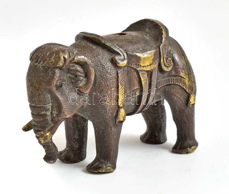 Leírás: Bronz elefánt figura füstölőtartó 6,5x4,5 cm
