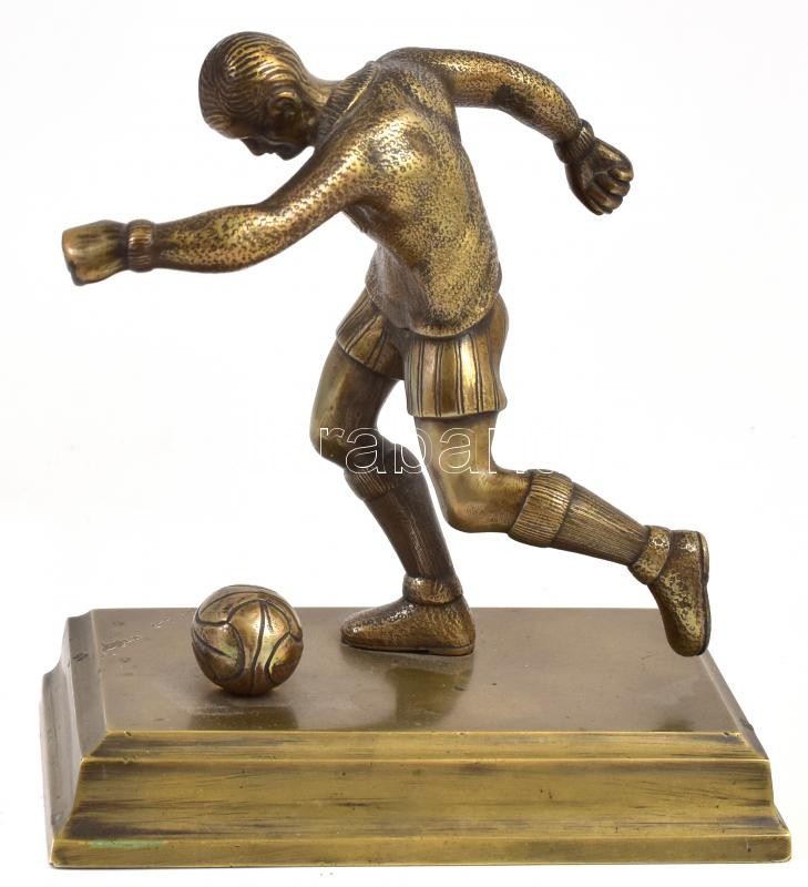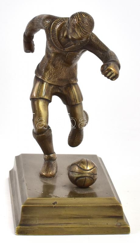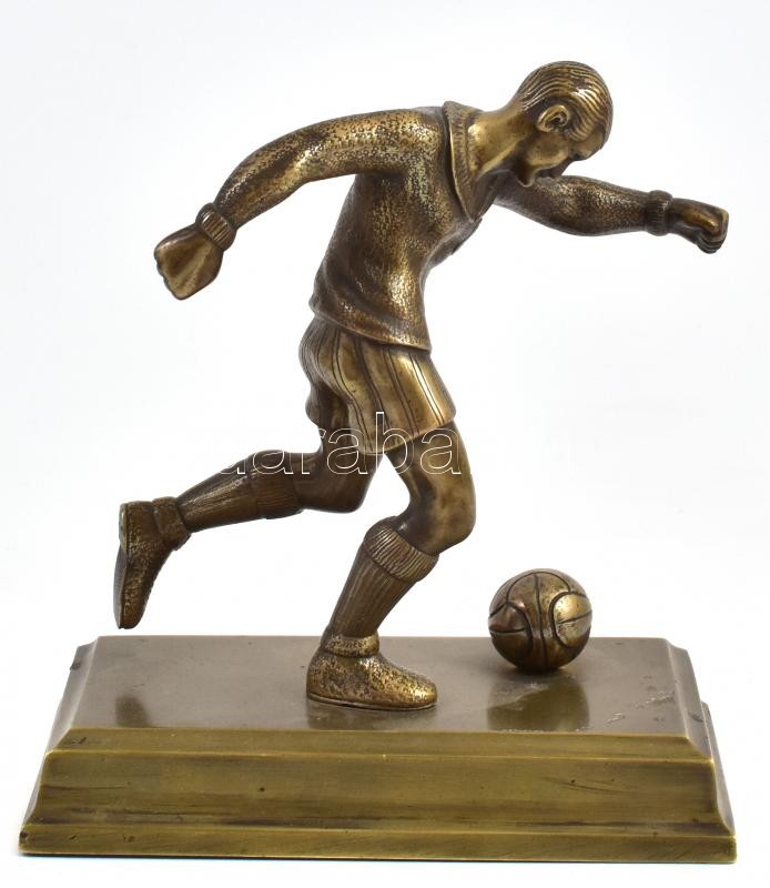 Leírás: Magyar focista szobra. Bronz, jelzés nélkül, bronz talapzaton. m: 16 cm