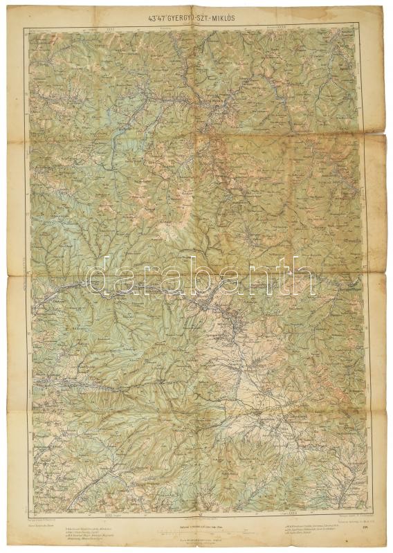 Leírás: 1915 Gyergyószentmiklós környékének katonai térképe, kiadja: K. u. k. Militärgeographisches Institut, foltos, szakadással, 60×43 cm