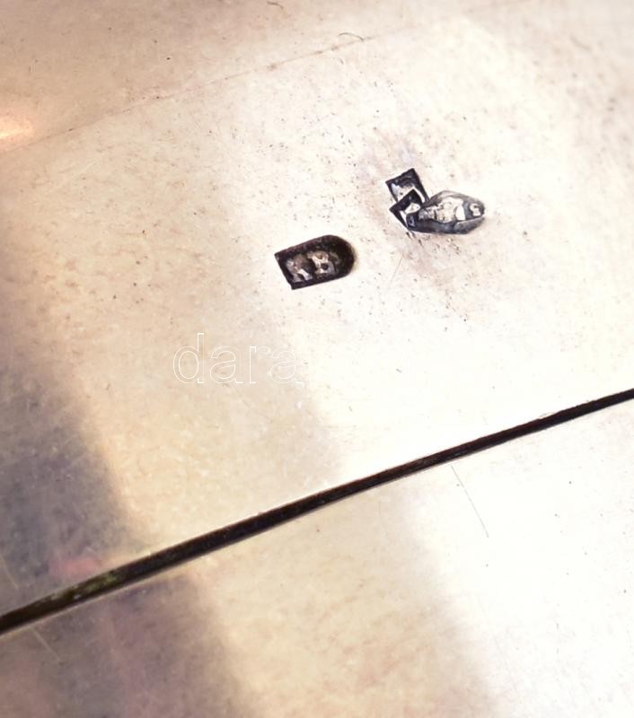 Leírás: Ezüst cukordoboz (Ag). Poncolt 1867-1937 közötti fémjellel, KB mesterjeggyel. 110 g, 8,5x6,5 cm