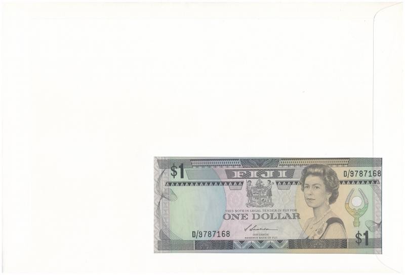 Fiji 1987. 1 Dollar in envelope with stamps and cancellations C:UNC