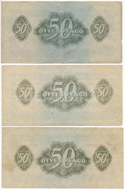 Leírás: 1944. 50P "A Vöröshadsereg Parancsnoksága" (3x) eltérő sorszám típusok, egyik kékes árnyalatú nyomattal T:III,III-