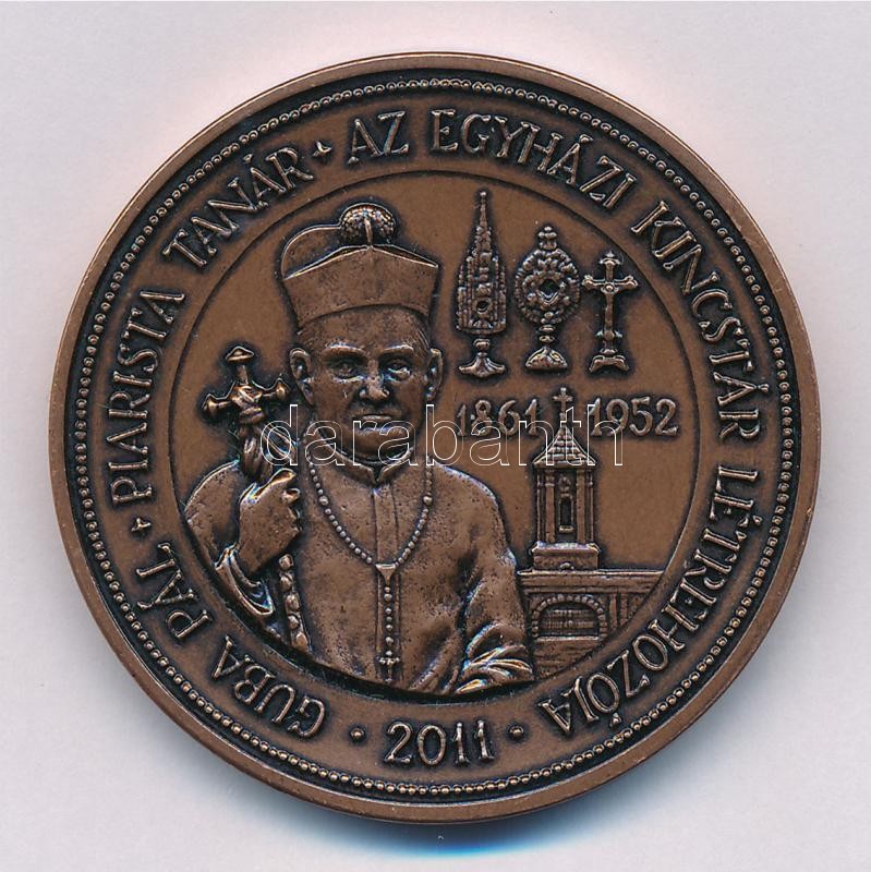 Szabó Imrefia Béla / Szabó Géza 2011. "Guba Pál - piarista tanár - az egyházi kincstár létrehozója - 2011 / Tisztelet az elÅ‘döknek - MÉE Gyöngyösi Csoport" kétoldalas Br emlékérem, dÃsztokban (42,5mm) T:1